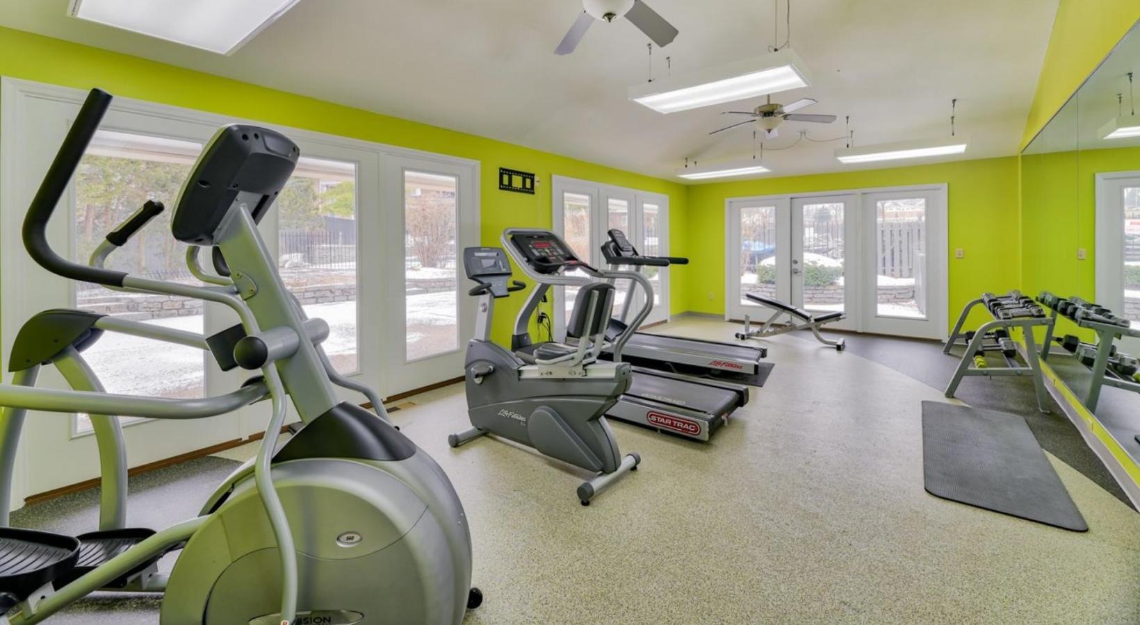 • a gym with exercise equipment
