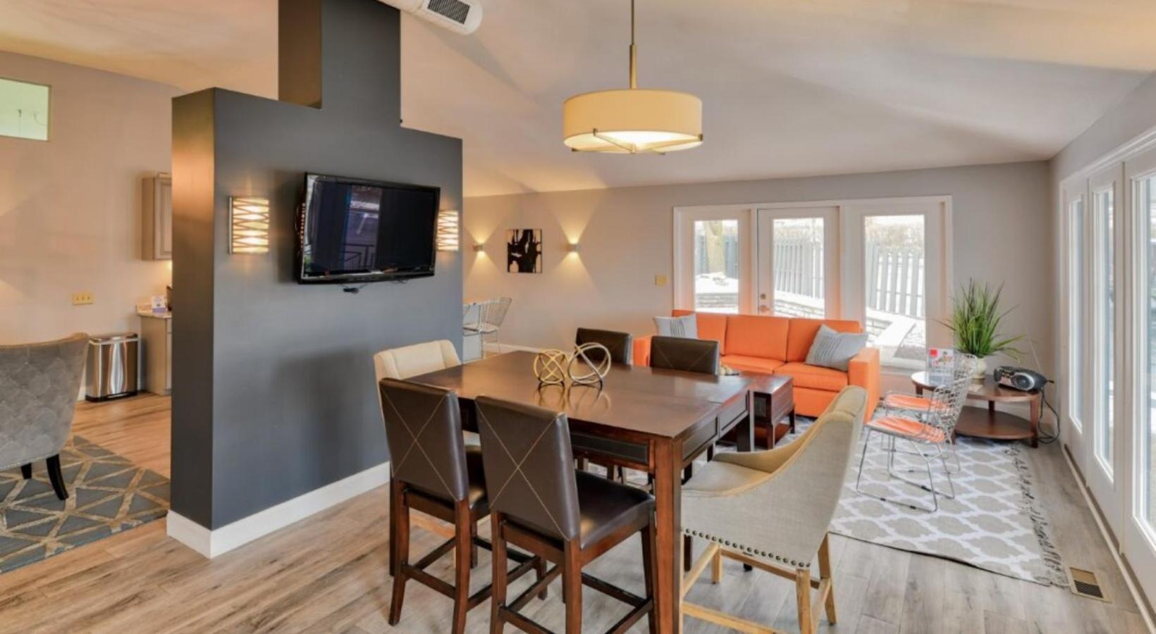 • a living room with a tv and chairs
